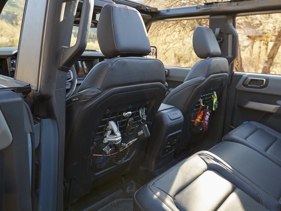 All Bronco® interiors are easy to maintain, and come with a variety of ways to show all of your gear.