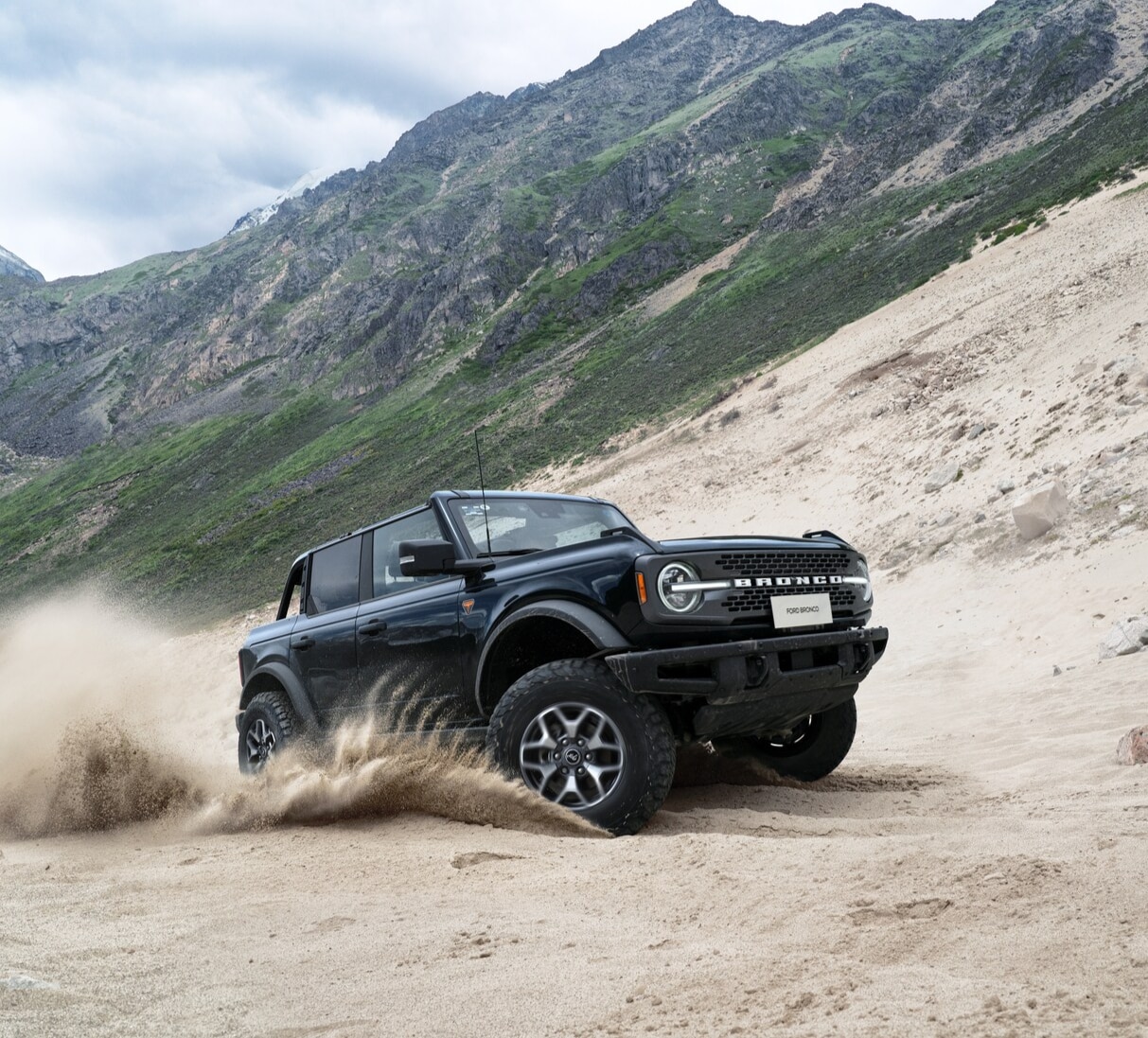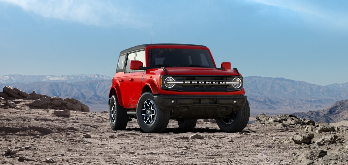 Features like an available heavy-duty modular front bumper and available steel bash plates let Bronco tackle truly unforgiving landscapes. The timeless design means it looks great doing it.