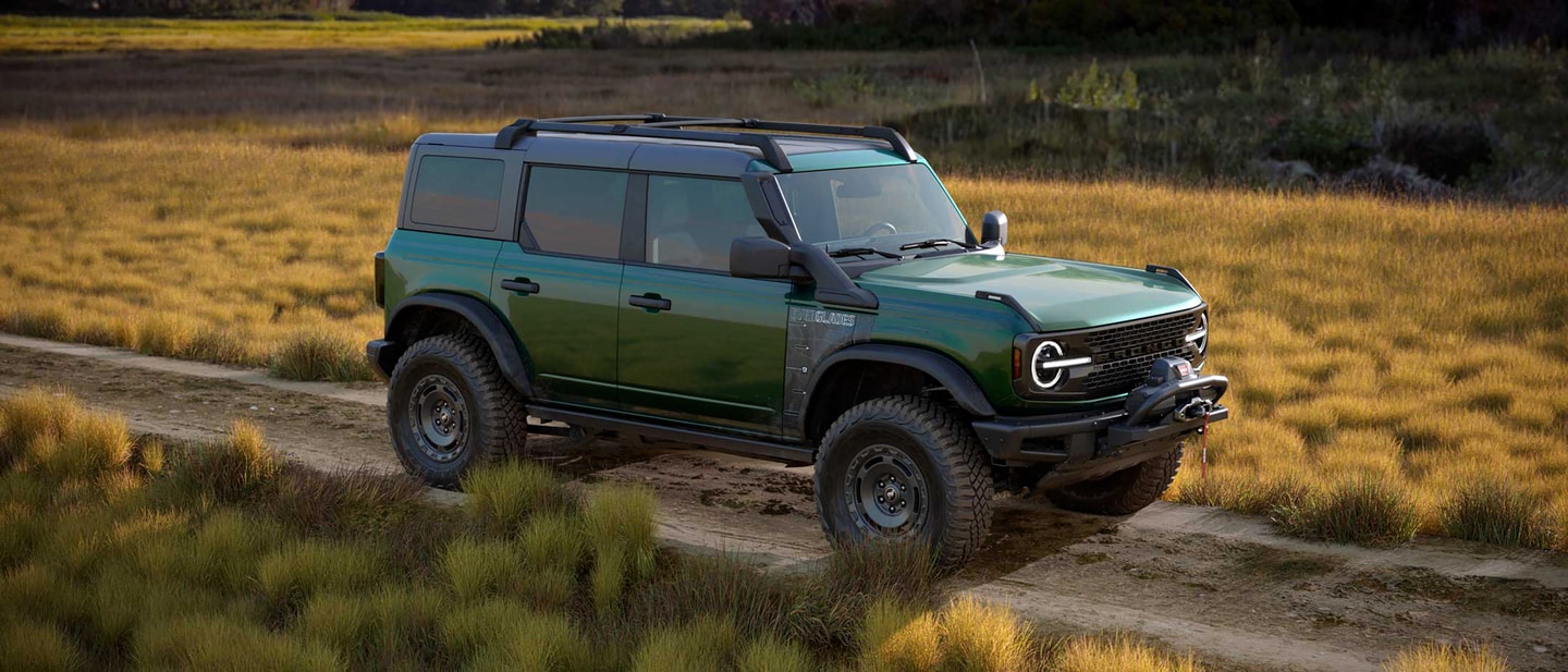 Bronco® Heritage Edition stuns in any of several '60s-inspired shades, with a contrasting Oxford White hard top and grille. Other retro touches include squared fenders and exclusive bodyside graphics.