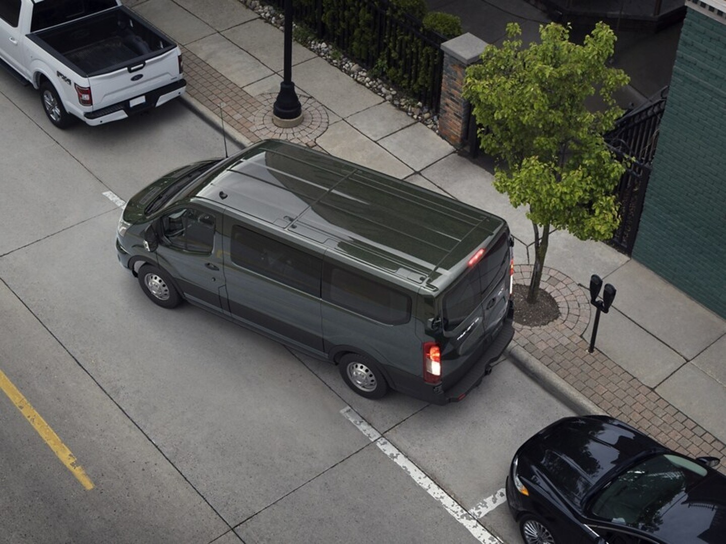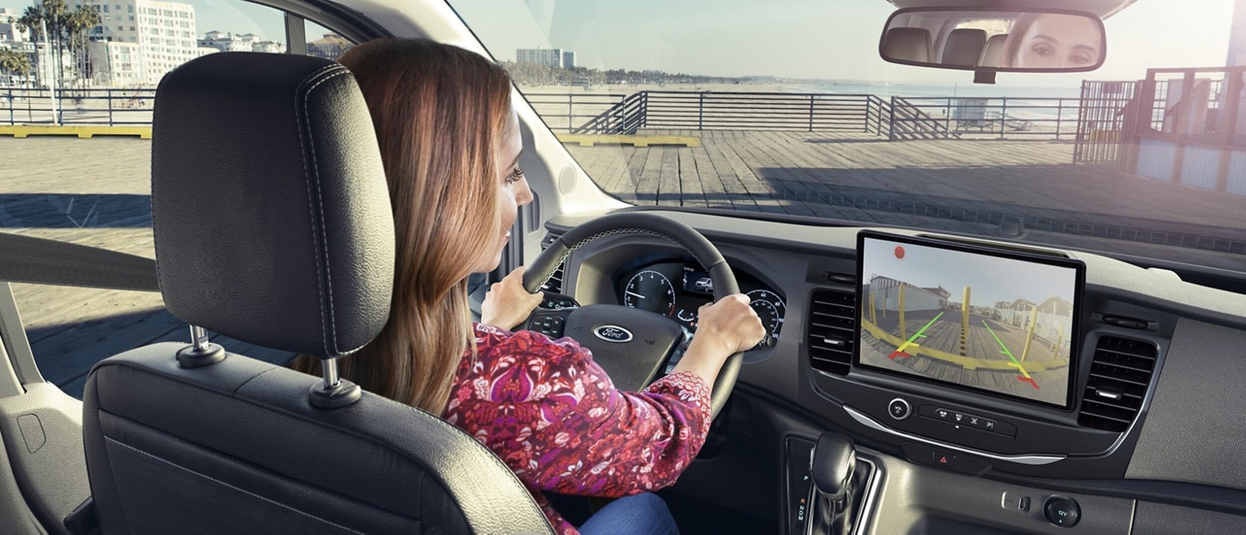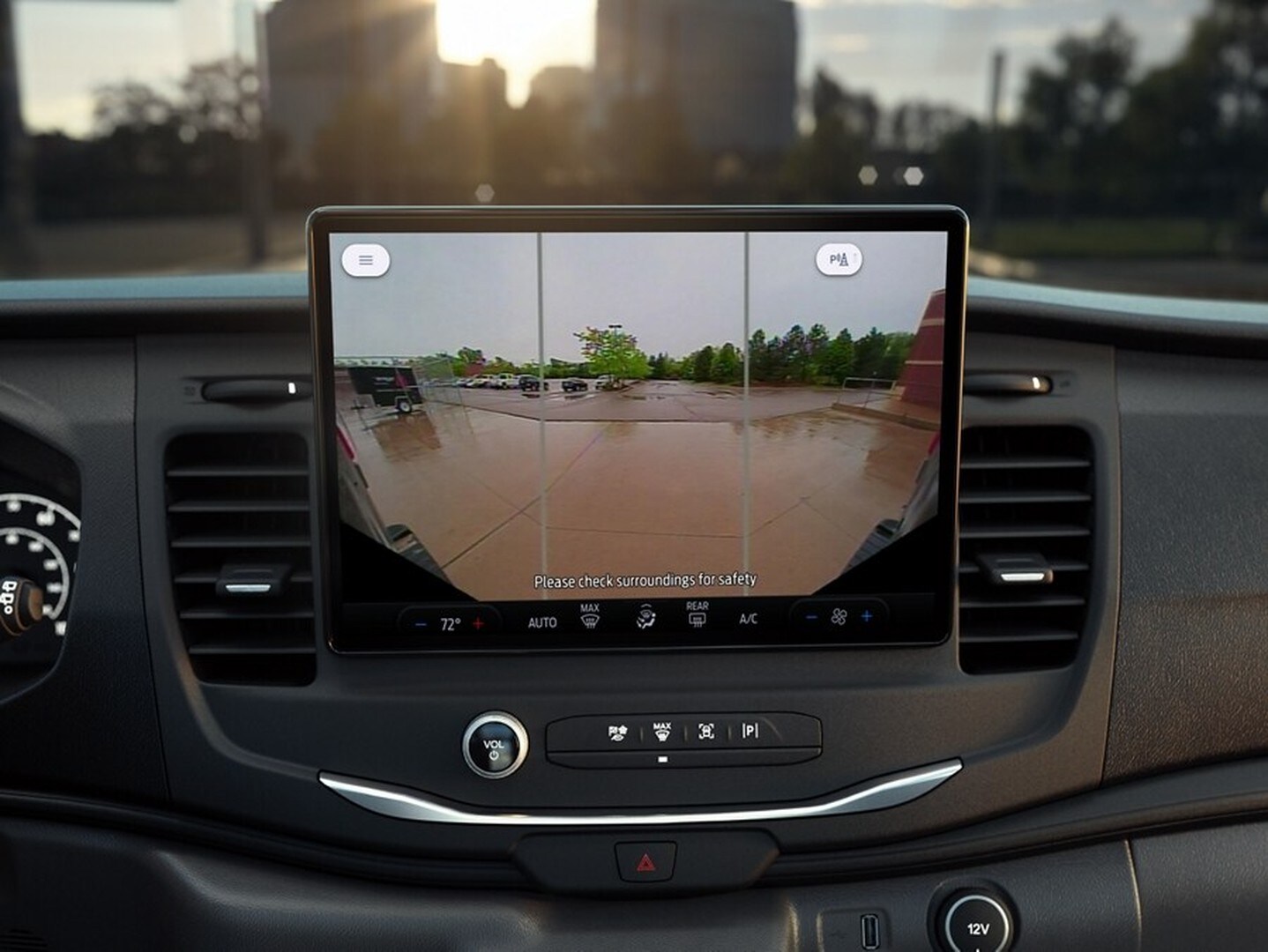 Navigate tight spaces and crowded parking lots with ease as this available feature gives a bird's-eye view around your Transit® van.